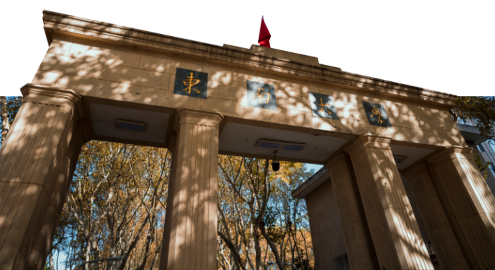 這是一首以《臨江仙》詞調(diào)寫成的歌詞?!杜R江仙》屬雙調(diào),間于中調(diào)與小令間。柳永《樂(lè)章集》入 “仙呂調(diào)”。“仙呂調(diào)”是“黃鐘宮”的六調(diào)之一,“黃鐘大呂”屬高亢激越的聲調(diào),故極長(zhǎng)于抒情?!杜R江仙》別體很多(共13種),此用第六體(依萬(wàn)樹《詞律》)。開頭用兩個(gè)六字句,上下片結(jié)尾用兩個(gè)五字句,字?jǐn)?shù)相同,平仄相反,易于形成對(duì)仗。全詞僅58字,也方便記誦。 詞用一組工整的對(duì)仗句開頭:“東攬鍾山紫氣,北擁?yè)P(yáng)子銀濤”,首先寫出東大的地理位置。東大地處南京,又位于鍾山之西南。鍾山,一名蔣山,乃南京第一名勝。山高高聳立于城東北,距東南大不過(guò)兩三華里,從學(xué)校望去,不僅山似乎近在咫尺,甚至草木也依稀可辯。東晉時(shí),因山有紫色石而被南遷的達(dá)官貴人改名“紫金山”。其實(shí),真紫金山在山西境內(nèi),東晉南渡士人只是借此慰藉自己的思鄉(xiāng)之情。這里的“紫氣” 不是用老子“紫氣東來(lái)”之典,而是切“紫金山”之名。庾信《哀江南賦》中便有“昔之虎踞龍盤,加以黃旗紫氣”之句。由于山近,仿佛可將山中之山嵐紫氣“攬 ”之入懷。后一句切東大位于揚(yáng)子江畔。“北擁”二字又明言學(xué)校主要部分在江南卻又橫跨長(zhǎng)江兩岸,“江南”是令天下人魂?duì)繅?mèng)繞之地,謝脁《入朝